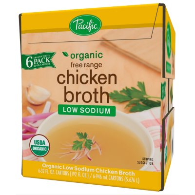 Pacific Organic Free Range Low Sodium Chicken Broth 32 Oz Carton 6 Ct Sam S Club