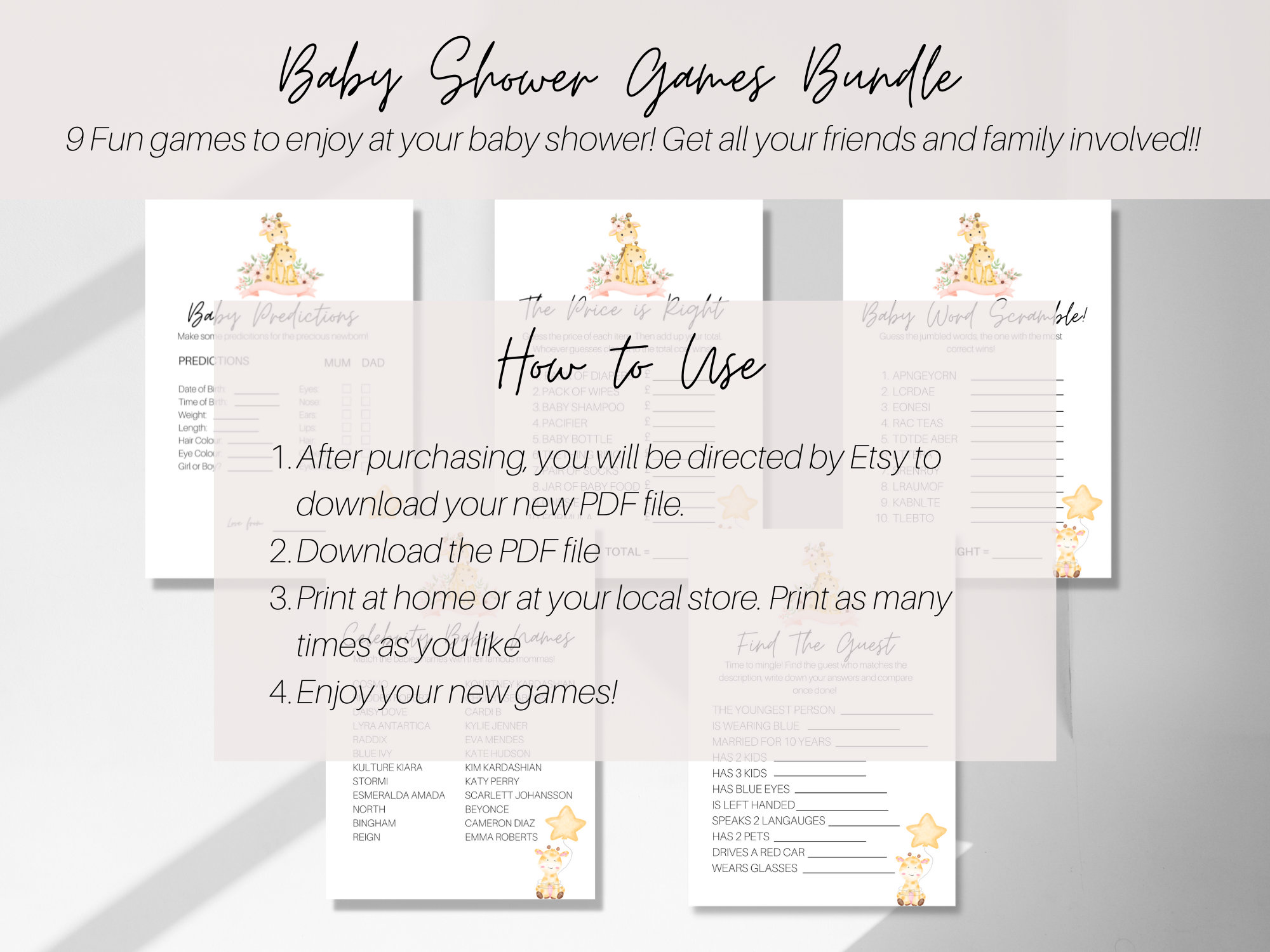Giraffe Baby Shower Games Printable Baby Shower Games Animal Etsy
