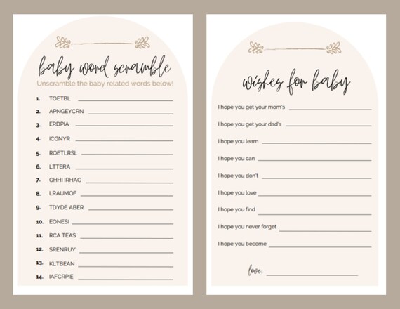 Modern Minimalistic Baby Shower Games Baby Shower Games Boho Etsy